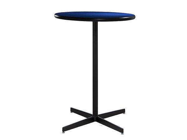 Unique round blue top bar table with black metal star base. Dims: 30" R, 42" H