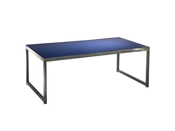 Contemporary cocktail tables in blue and wood grain with optional matching end tables. Size = Length 48", Depth 26" , Height: 18".
