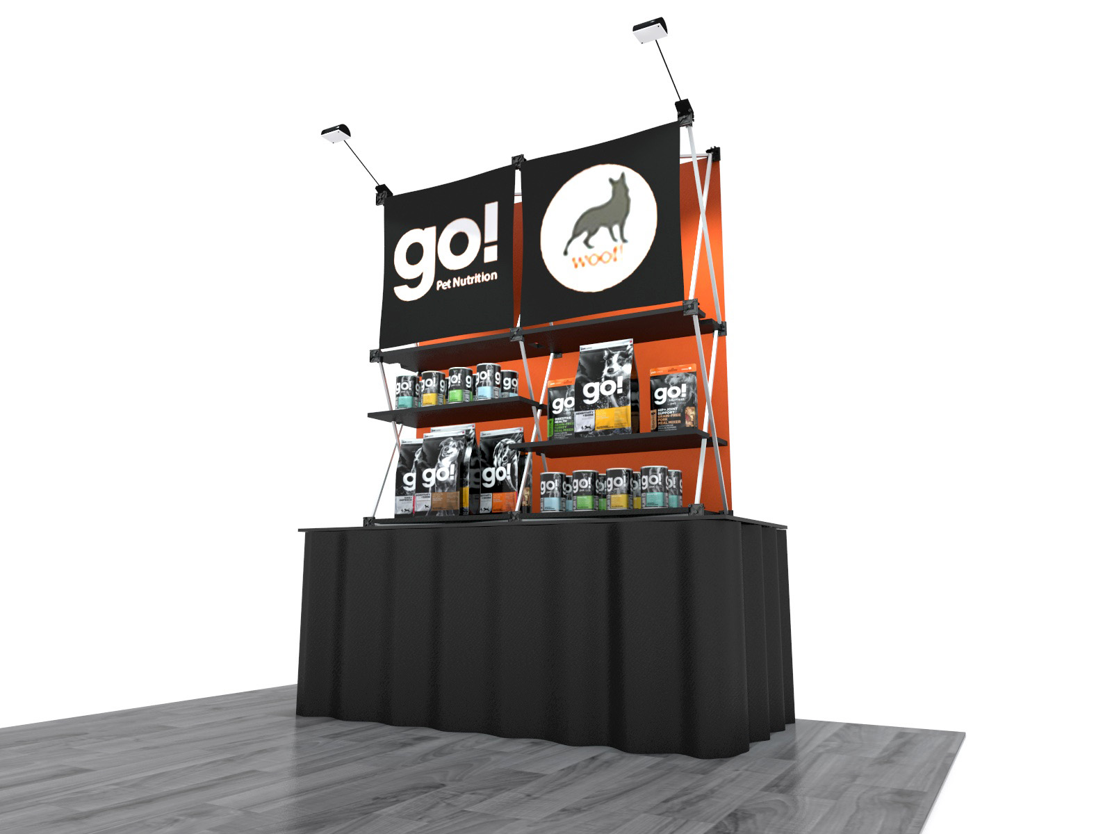 - Optional Lights, Backwall Shelf, and Lycra Wrap