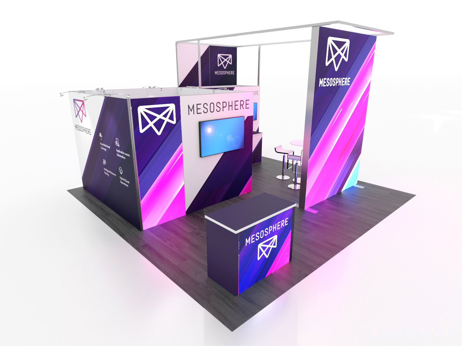Hybrid is a relatively new category of trade show displays. Generally, hybrid displays incorporate aluminum extrusion, tension fabric, and other display components such as laminates, wood, Sintra, and other materials to create a tabletop, inline, or island exhibit.