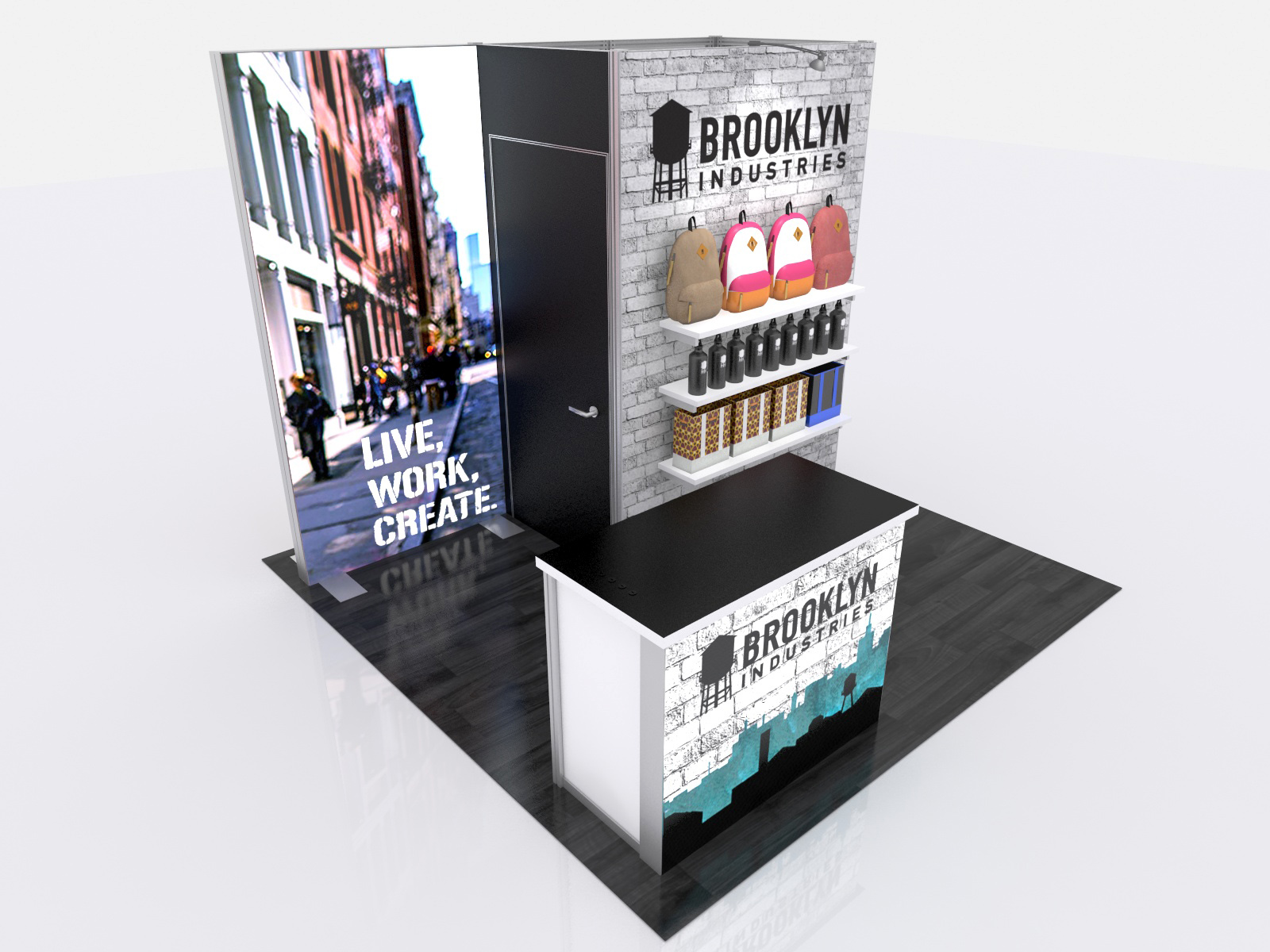 Design flexibility is critical for many exhibitors. Not only do they want to change the graphics depending on the trade show, but they also want the flexibility to add accessories and mix and match the structure. The GK-1017 and GK-1019 accomplishes all that while providing the modern exhibitor with product shelves, storage, and a dynamic backlit MOD-1700 reception counter. In addition, the Gravitee One-Step System makes it easy with a mostly tool-free assembly, including the (1) Gravitee LED Lightbox or (1) SuperNova LB. The open floorplan allows for the addition of rental furniture for casual conversations or informal meetings. Plus, because the Gravitee System is modular, expanding the inline into an island design couldn't be easier. For the ultimate tradeshow display, look no further than Gravitee. Flexibility. Design. Convenience.