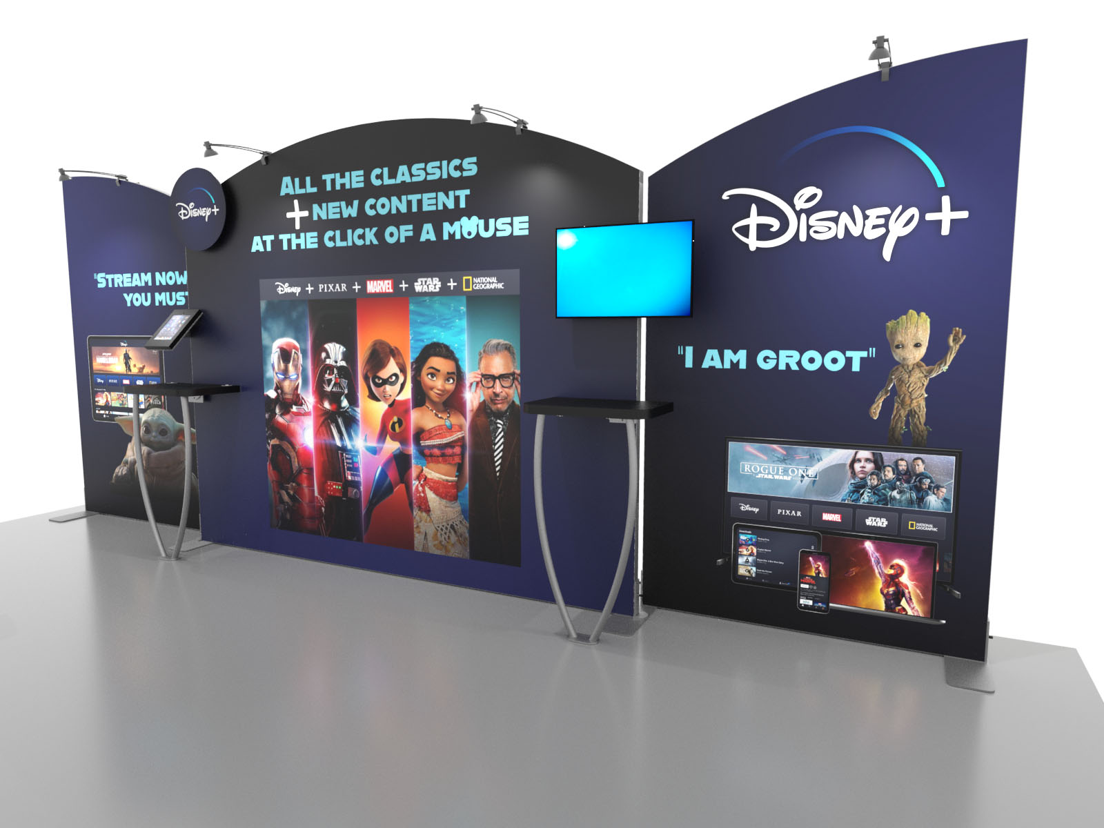 Personalize your Symphony Display with attractive counters, workstations, floating graphics, iPad clamshells, and monitor mounts. The lightweight aluminum frames are engineered for SEG dye-sublimated fabric graphics for a seamless, wrinkle-free look. Add floating graphics for additional visual layering and branding.