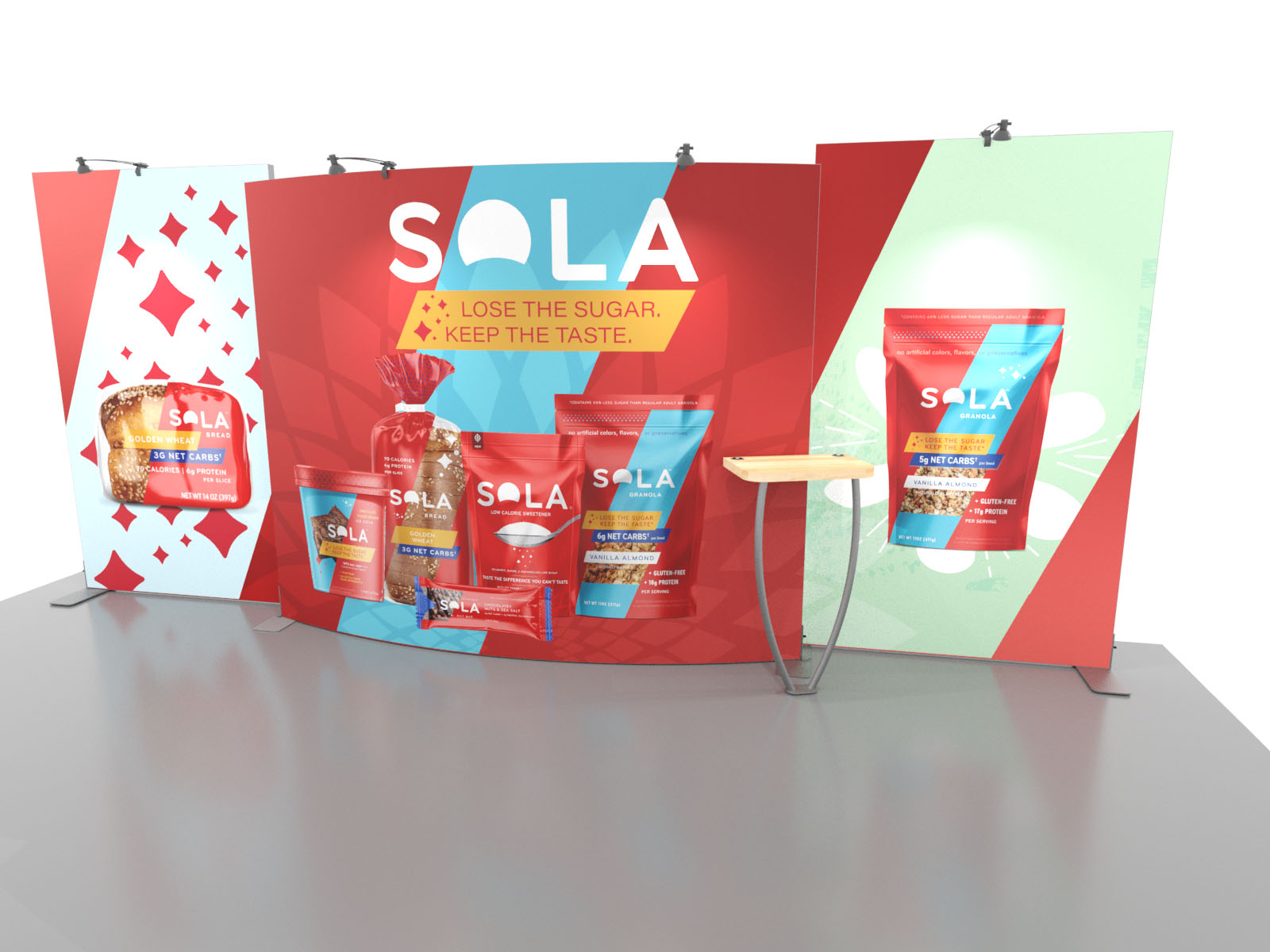 Personalize your Symphony Display with attractive counters, workstations, floating graphics, iPad clamshells, and monitor mounts. The lightweight aluminum frames are engineered for SEG dye-sublimated fabric graphics for a seamless, wrinkle-free look. Add floating graphics for additional visual layering and branding.