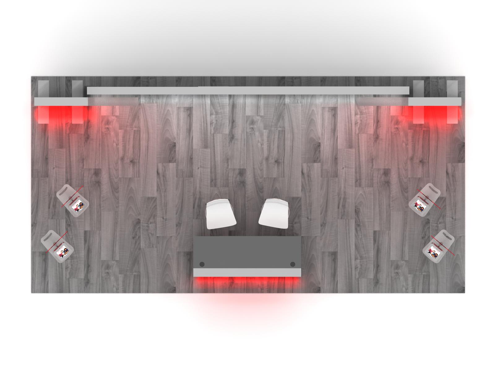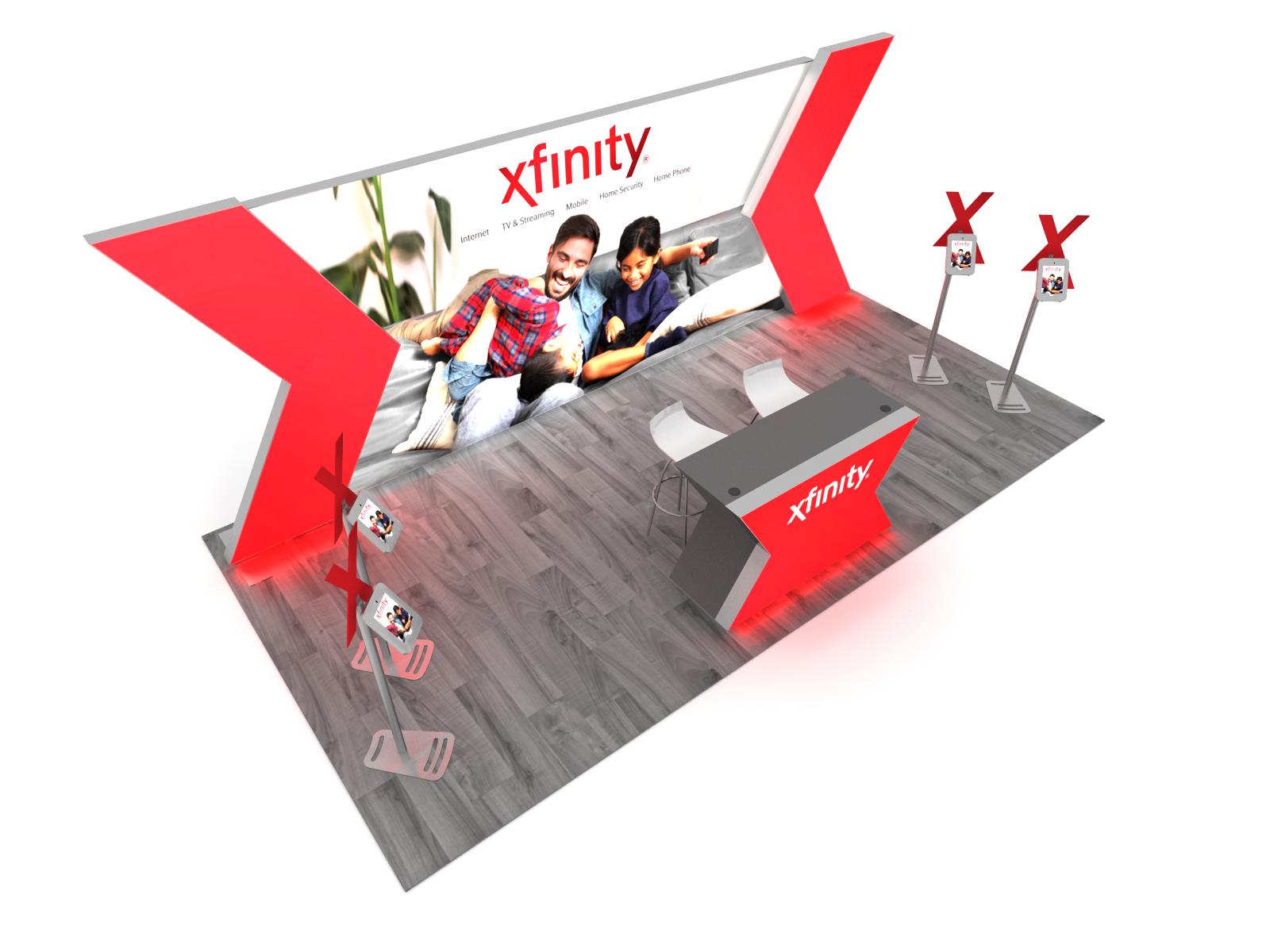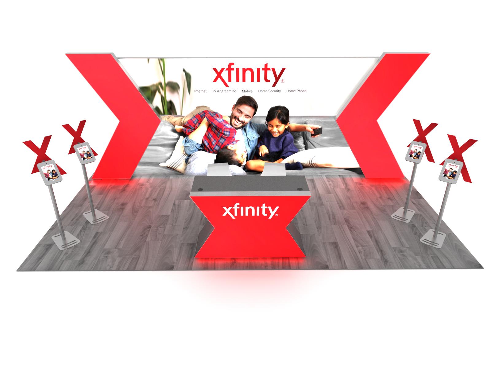 These distinctive Inline lightbox designs blend exceptionally bright LED lights, an aluminum SEG frame, and vibrant fabric graphics into a brilliant eye-catching display. The large LED lightbox spans the display and is framed with angular SEG frames. Upfront there are MOD-1368 iPad Kiosks with graphics and a beautiful MOD-1595 reception counter with backlit graphics and wireless and USB charging ports. The design includes integrated cord management. You won't believe your eyes the first time you flip the switch and see how stunning your backlit graphic can be.