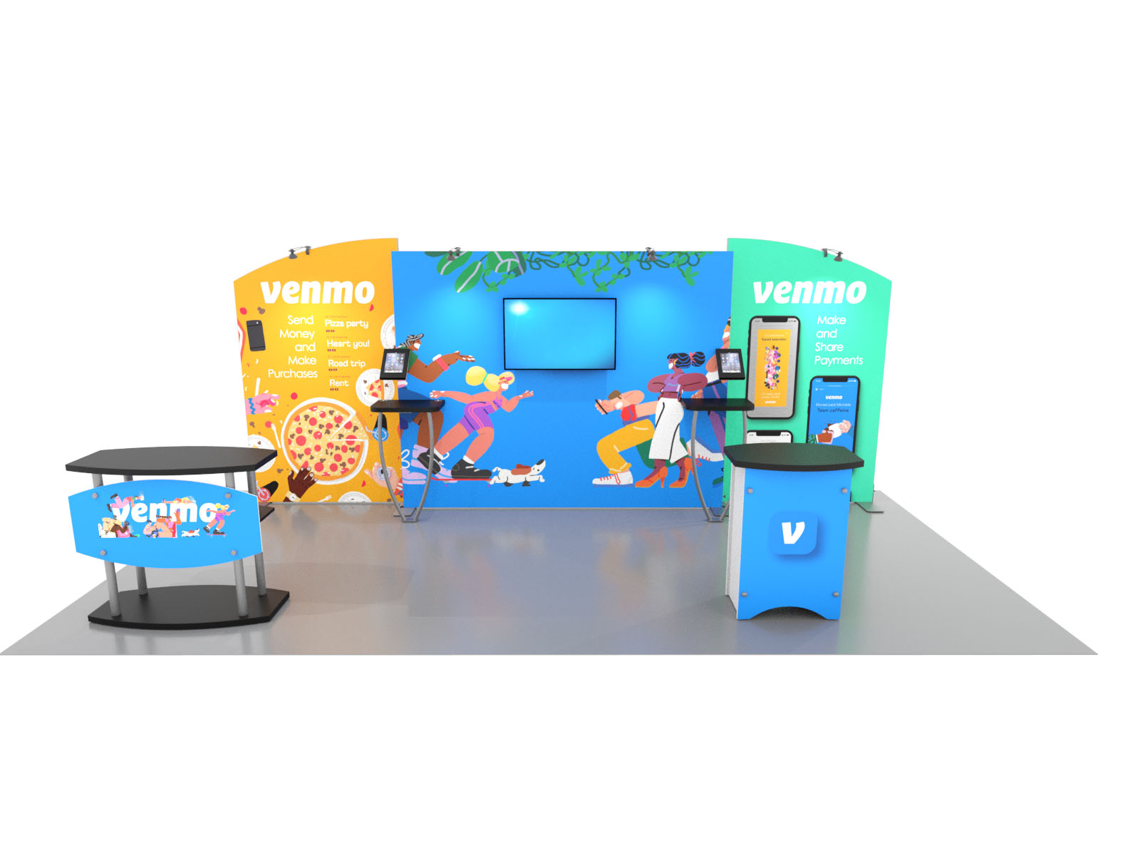 Personalize your Symphony Display with attractive counters, workstations, floating graphics, iPad clamshells, and monitor mounts. The lightweight aluminum frames are engineered for SEG dye-sublimated fabric graphics for a seamless, wrinkle-free look. Add floating graphics for additional visual layering and branding.
