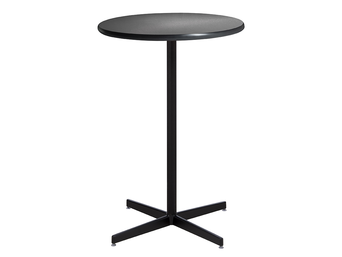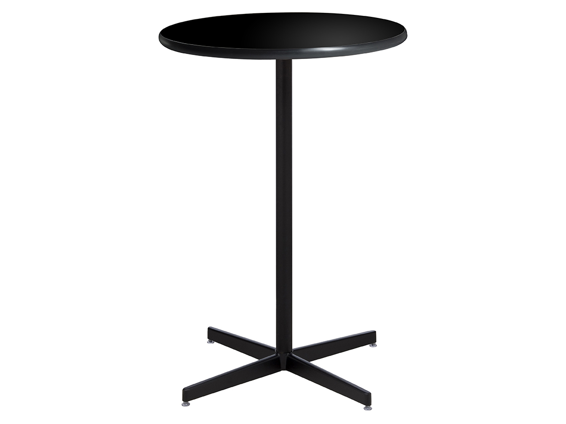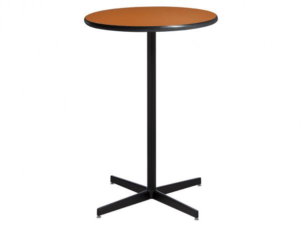 Unique round bar table in various counter top colors with standard black base base. Dims: 30" R, 42" H