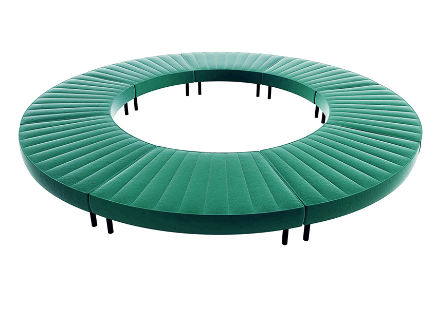Endless Closed Circle Ottoman -- Trade Show Furniture RentalThis retro-vibe, green velvet closed circle ottoman with a modern flair is compact, comfortable and stylish. Dims: 158" RND  x 15" H