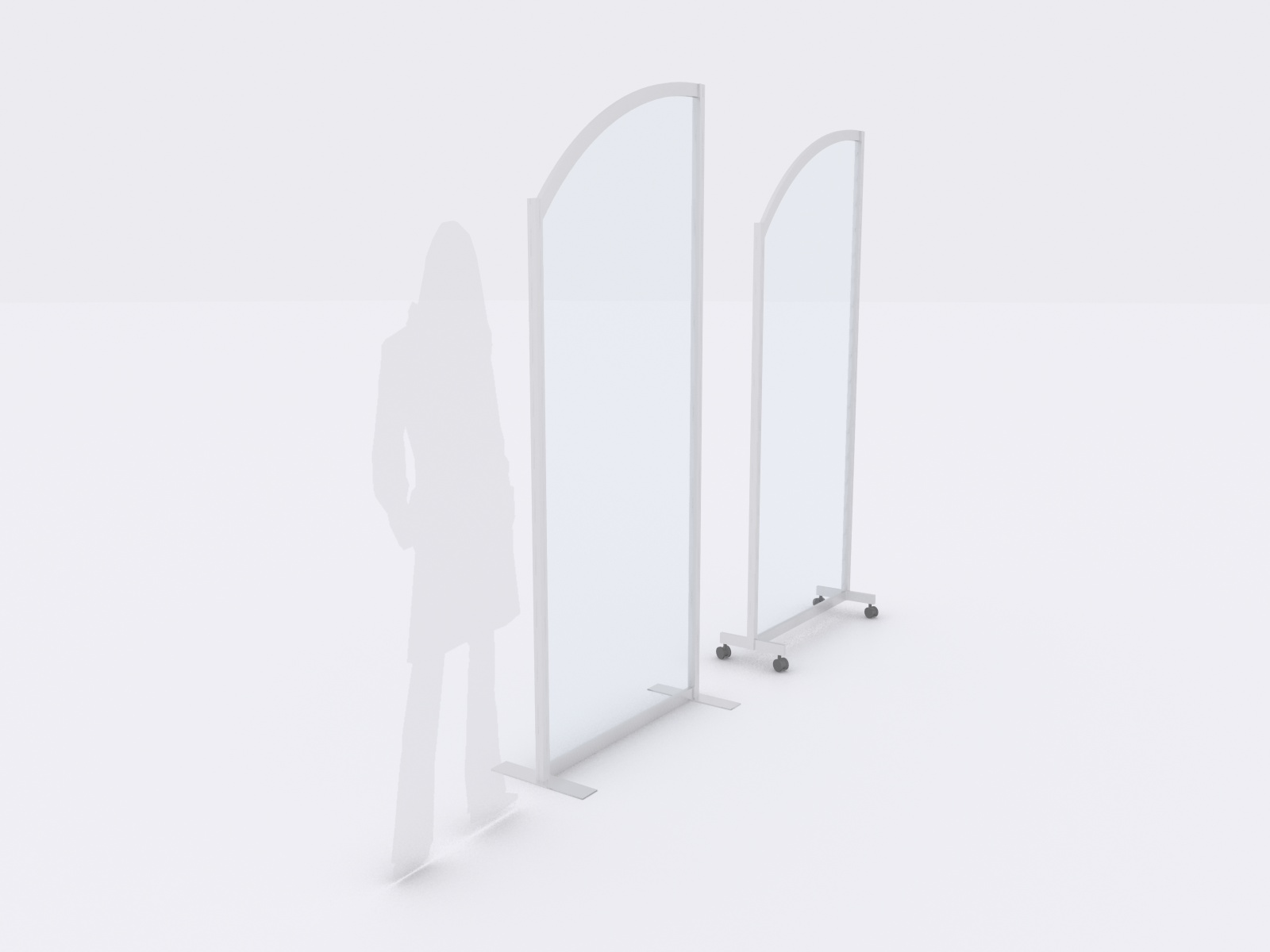 MOD-8018 and MOD-8019 Safety Dividers -- Image 1Safety Dividers are essential in retail stores, offices, churches, events, and any public gathering. They create physical distance, maintain order, and protect people anywhere groups are present. In permanent or semi-permanent situations, base plates are the logical choice. Where the dividers are meant to be temporary or quickly moved, then castors are the best option.