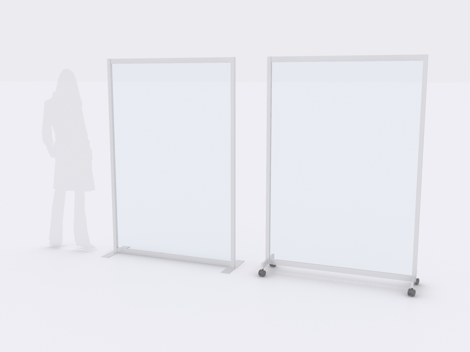 Safety Dividers are essential in retail stores, offices, churches, events, and any public gathering. They create physical distance, maintain order, and protect people anywhere groups are present. In permanent or semi-permanent situations, base plates are the logical choice. Where the dividers are meant to be temporary or quickly moved, then castors are the best option.