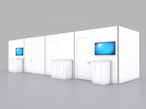 Modular Examination Rooms and Registration Stations are ideal as temporary structures, such as offsite facilities, overflow demands, or whenever construction requires short-term offices. The engineered aluminum frames are lightweight and satin anodized, making them incredibly durable and easy to clean. The frames assembly quickly, either with attached clips (Gravitee frames) or with a simple hex key (MODUL structures). The modular design allows them to expand or reconfigure, typically without disassembly of the existing structures.