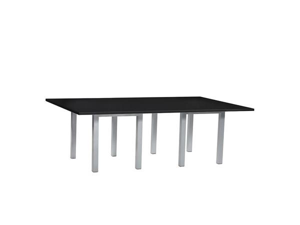 Modern conference table with black wood laminate top and silver base. Dims: 96" L x 48" D x 29" H