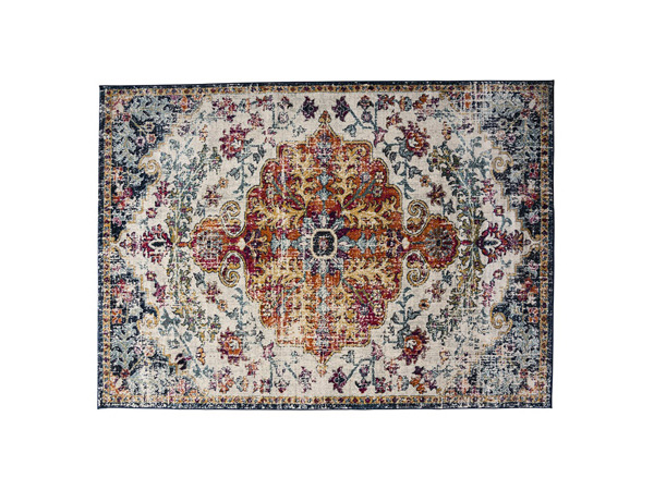 Choose a stylish Nile Rug with Outdoor Distressed Multi-Color as the perfect compliment to any meeting, event, or setting. Dims: 63" L x 87" D.