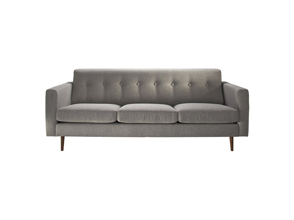 This comfortable gray fabric sofa with a modern flair is compact, comfortable and stylish. Dims: 82" L x 33.5" D x 32" H