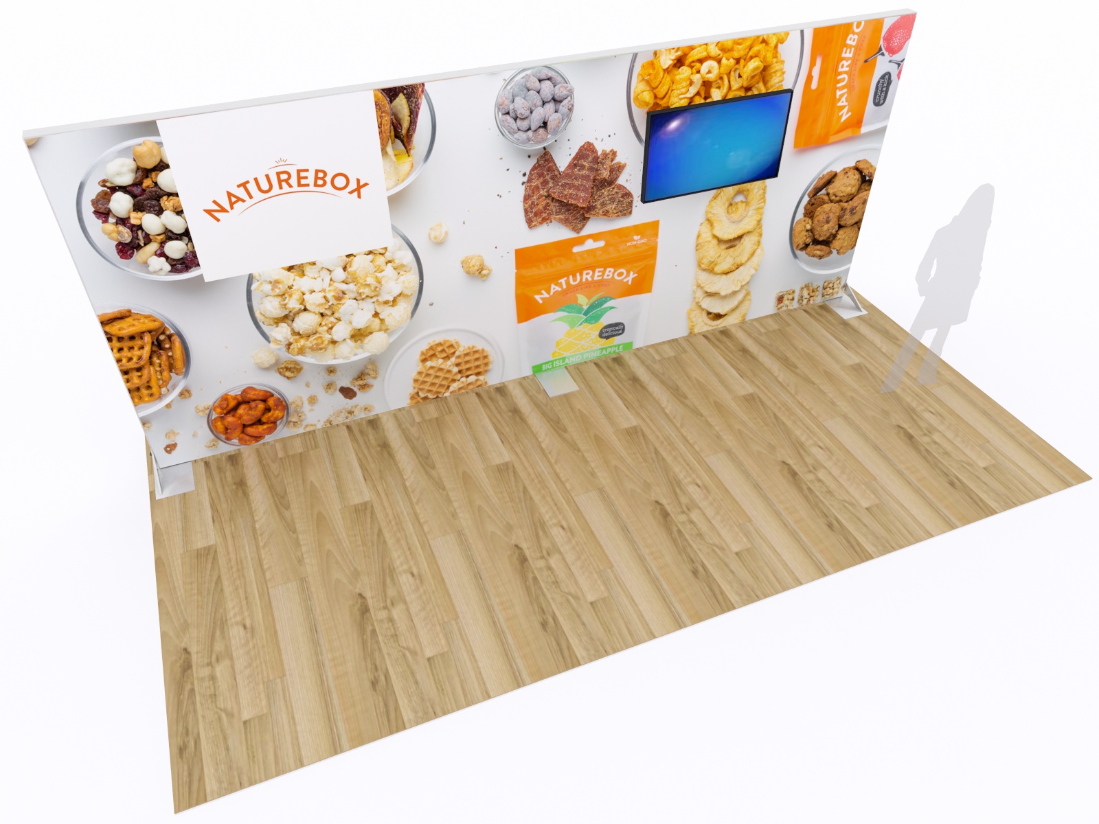 Walk any typical trade show. What do you see? 10 and 20 ft. inlines. Some effective. Many poorly made with low res graphics. For just a little more, you can have an exceptional quality, US made display with a high resolution graphics and a lifetime warranty. The VK-2996 is a big, bold exhibit constructed with an SEG engineered aluminum, silver anodized frame. The exceptionally strong, yet lightweight frame, supports up to a 50 in. LED monitor. 10 ft. and 20 ft. lightbox versions are available, in both one-sided and two-sided lightboxes. Request pricing. You won't believe your eyes the first time you install the HD fabric graphic.