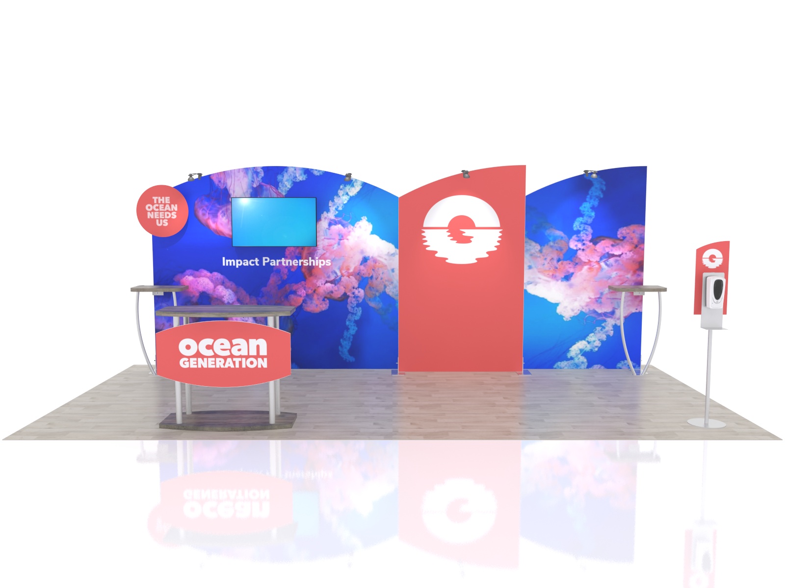 Personalize your Symphony Display with attractive counters, workstations, floating graphics, iPad clamshells, and monitor mounts. The lightweight aluminum frames are engineered for SEG dye-sublimated fabric graphics for a seamless, wrinkle-free look. Add floating graphics for additional visual layering and branding.