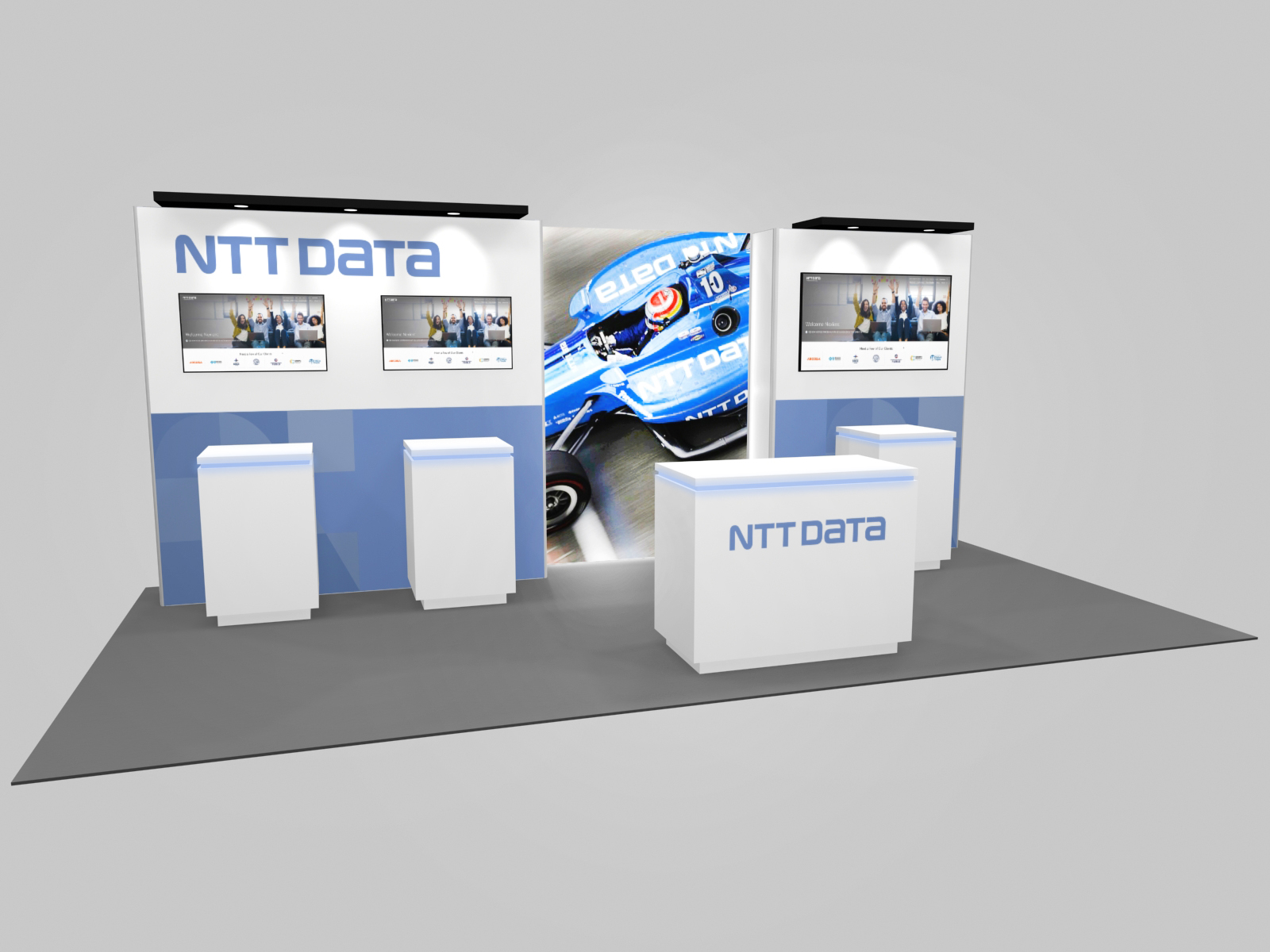 Demonstrating your products and services at a trade show is important, Critically important and often in a very limited time. The RE-2120 gives you all the tools to attract and engage attendees. Start with the (3) backwall counters with LED accent lights and large monitors. They make it easy to attract attendees and once interested to dive deeper into your product. On the aisle, there's a large functional reception counter with ample counter space and locking storage.