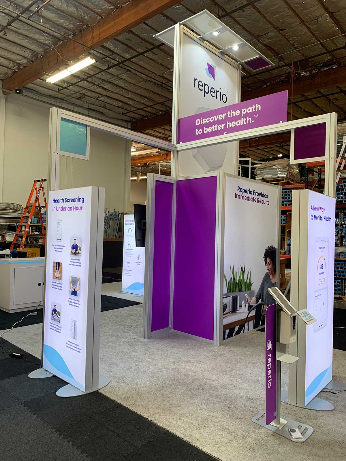 High Double-Sided Lightbox, (2) Gravitee Panel Kiosks with RE-1576
