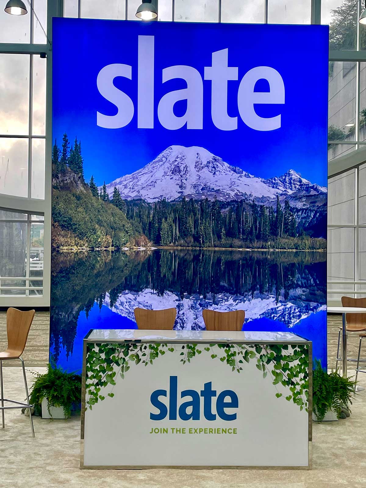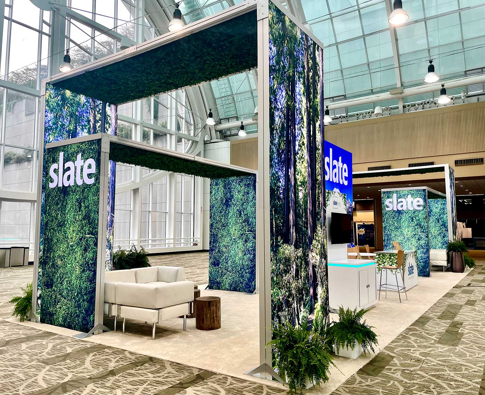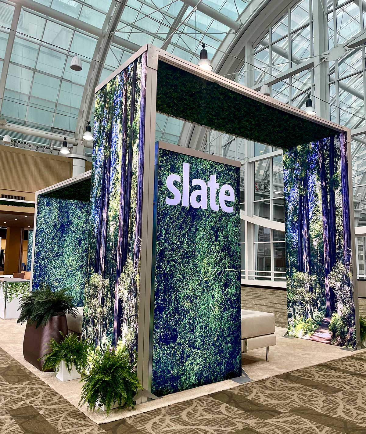 Counters, SEG Backlit Fabric Graphics, and Artificial Plant Finish