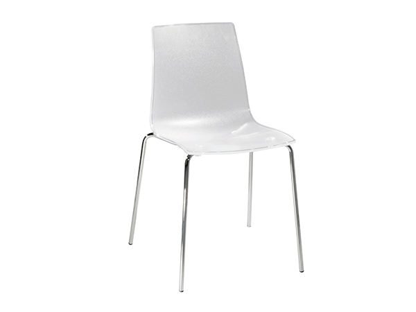 Frosted acrylic chair with with silver chrome legs for a modern and eclectic environment. Dims: 19.5" L x 19.75" D x 32.5" H