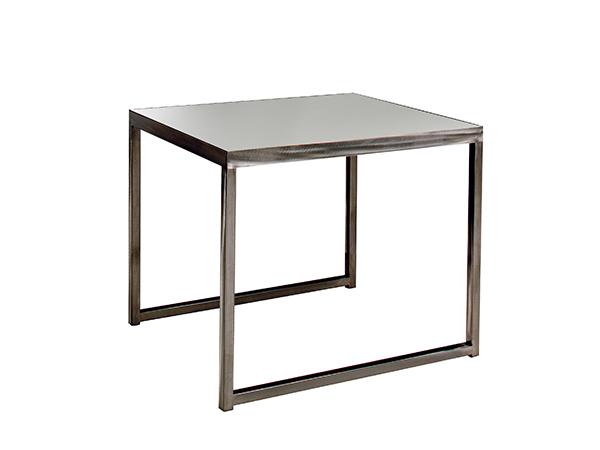 Simply stylish rectangular white laminate end table with brushed steel frame. Size = Length 27", Depth 23" , Height: 22".