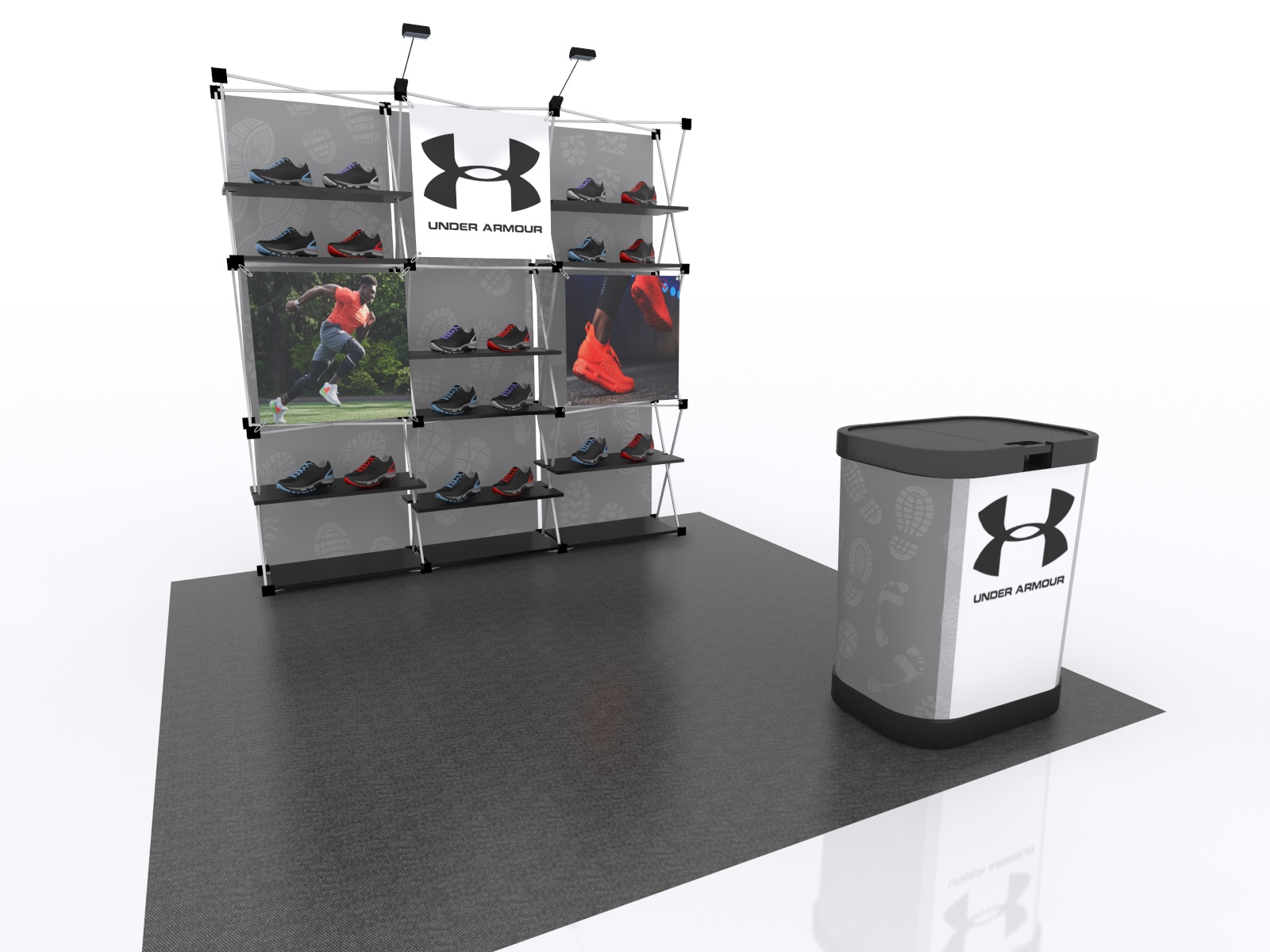 - Optional Lights, Backwall Shelf, and Lycra Wrap