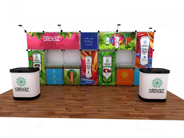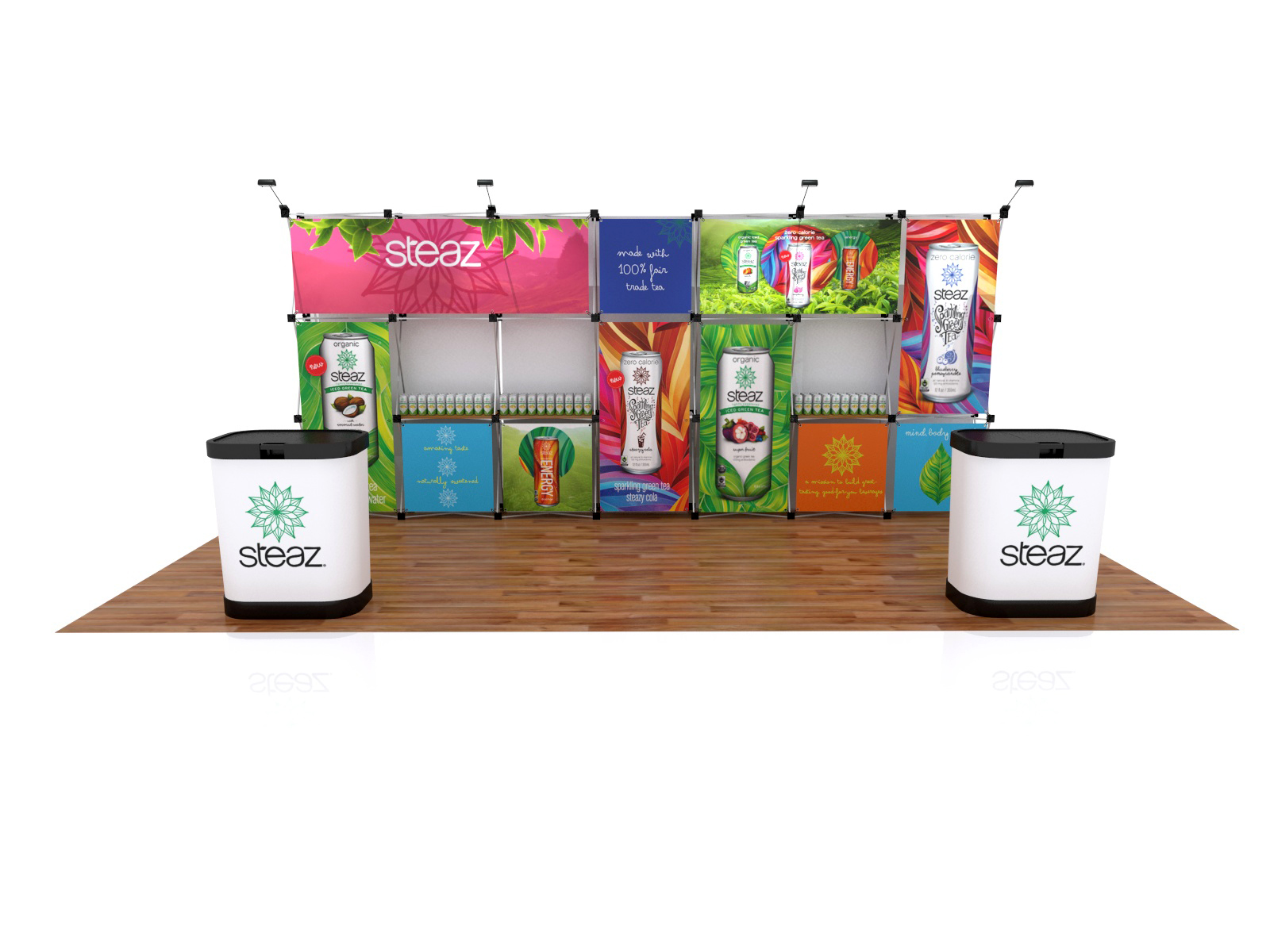 The Quadro Floating Graphic System (FGS) combines convenience and graphic pizzazz into an affordable, portable display. The Quadro frame expands in seconds, and the graphics attach easily with flexible rings. Need to change a graphic for a new product or marketing campaign? No problem. The individual panels make switching graphics quick and cost-effective. Elevate your presentation even more with a stylish printed lycra case wrap, instantly turning storage into a counter. Add lights and a backwall shelf for even more impact. The entire display assembles quickly, and disassembles even faster for a quick exit.