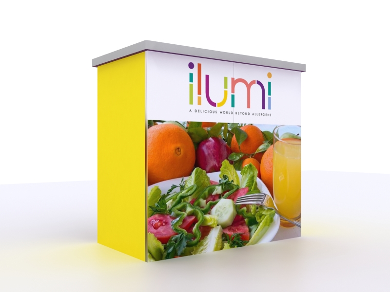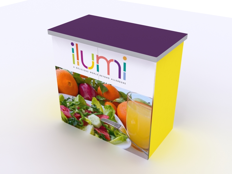 LT Modular counters are lightweight laminate or fabric counters that are attractive, versatile, and portable. The counters feature modular "no-tools" panels with patented slide-click connectors. Most designs offer open or closed backs, many with locking doors. All are available with fabric or laminate finishes, featuring hundreds of colors. When adding graphics, whether Velcro-applied or vinyl wrapped, opt for a full branding treatment for maximum exposure on the show floor. Many come with locking storage. Don't see exactly what you want? No problem. We specialize in designing and building counters and pedestals that meet any need.