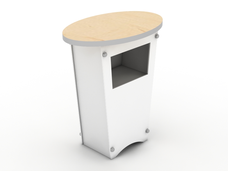 There are nearly 200 choices in the Counters and Pedestals gallery at a range of prices and features. Nearly all come with locking storage. Most counters and pedestals are modular, meaning they disassemble for shipping, but there are quite a few custom counters which ship fully assembled. Don't see exactly what you want? No problem. We specialize in designing and building counters and pedestals that meet any need.