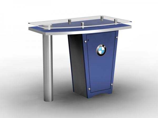 When choosing the right counter or pedestal for your display, consider how you will use it on the show floor. Do you need locking storage? Will the counter or pedestal hold a lead retrieval machine, laptop, or other electrical device? If so, you will need wire management. That may be as simple as ordering a grommet for the counter. If you are planning to use a tablet computer, consider the tablet insert option for the counter top. This option is practical, attractive, and secure for many tablets, such as an iPad.