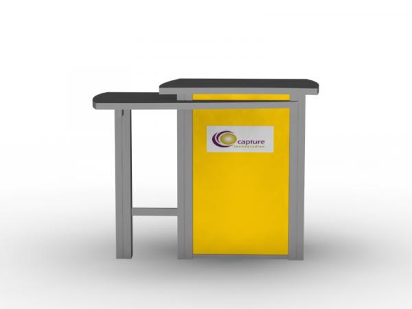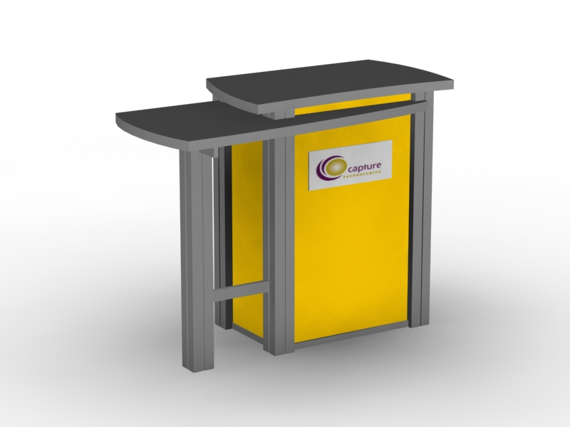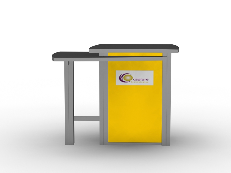 When choosing the right counter or pedestal for your display, consider how you will use it on the show floor. Do you need locking storage? Will the counter or pedestal hold a lead retrieval machine, laptop, or other electrical device? If so, you will need wire management. That may be as simple as ordering a grommet for the counter. If you are planning to use a tablet computer, consider the tablet insert option for the counter top. This option is practical, attractive, and secure for many tablets, such as an iPad.