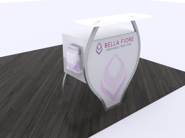 When choosing the right counter or pedestal for your display, consider how you will use it on the show floor. Do you need locking storage? Will the counter or pedestal hold a lead retrieval machine, laptop, or other electrical device? If so, you will need wire management. That may be as simple as ordering a grommet for the counter. If you are planning to use a tablet computer, consider the tablet insert option for the counter top. This option is practical, attractive, and secure for many tablets, such as an iPad.
