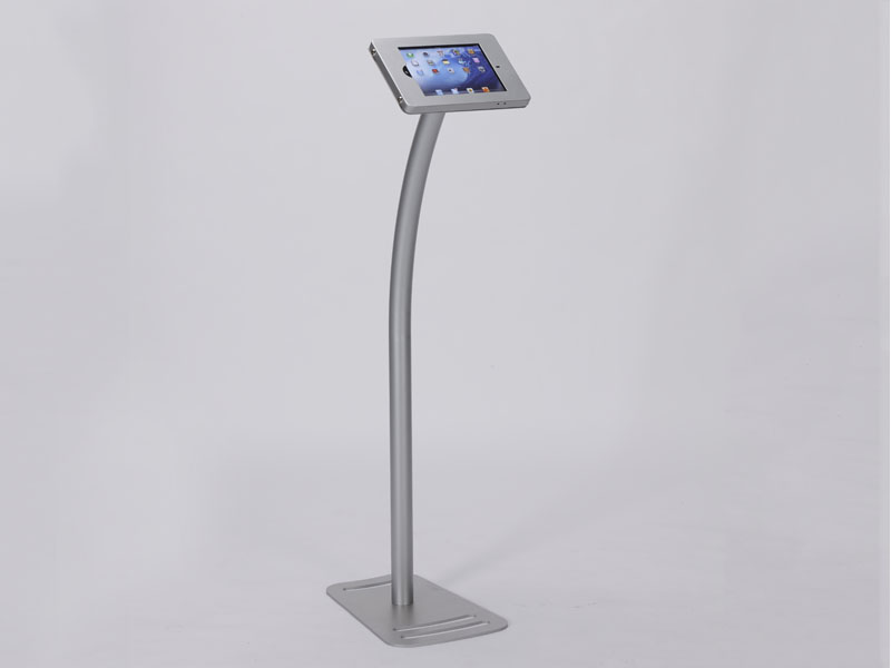 MOD-1333 Portable iPad Kiosk -- SilverThe Port Land iPad Kiosks™ are anything but dull. They are innovative, lightweight, and affordable. The locking clamshell frame rotates with the unique Swivel Stop™ feature, allowing you to seamlessly reposition your iPad to Portrait or Landscape mode. The kiosks are made from durable engineered aluminum and assembly in minutes. There are multiple single iPad kiosks. The MOD-1334 is designed for two iPads and the MOD-1338 for four iPads. All have integrated cord management.
