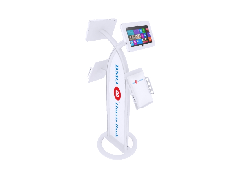 The Port Land Surface Stands are anything but dull. They are attractive, lightweight, and affordable. The secure enclosure rotates with the unique Swivel Stop™ feature, allowing you to seamlessly reposition your Microsoft Surface to Portrait or Landscape mode. The kiosks are made from durable engineered aluminum and assembly in minutes. The MOD-1353M is designed for (1) Surface with (2) literature holders. The MOD-1355M is designed for (2) Surface enclosures and (2) literature holders. There's even an all literature holder version -- the MOD-1354.