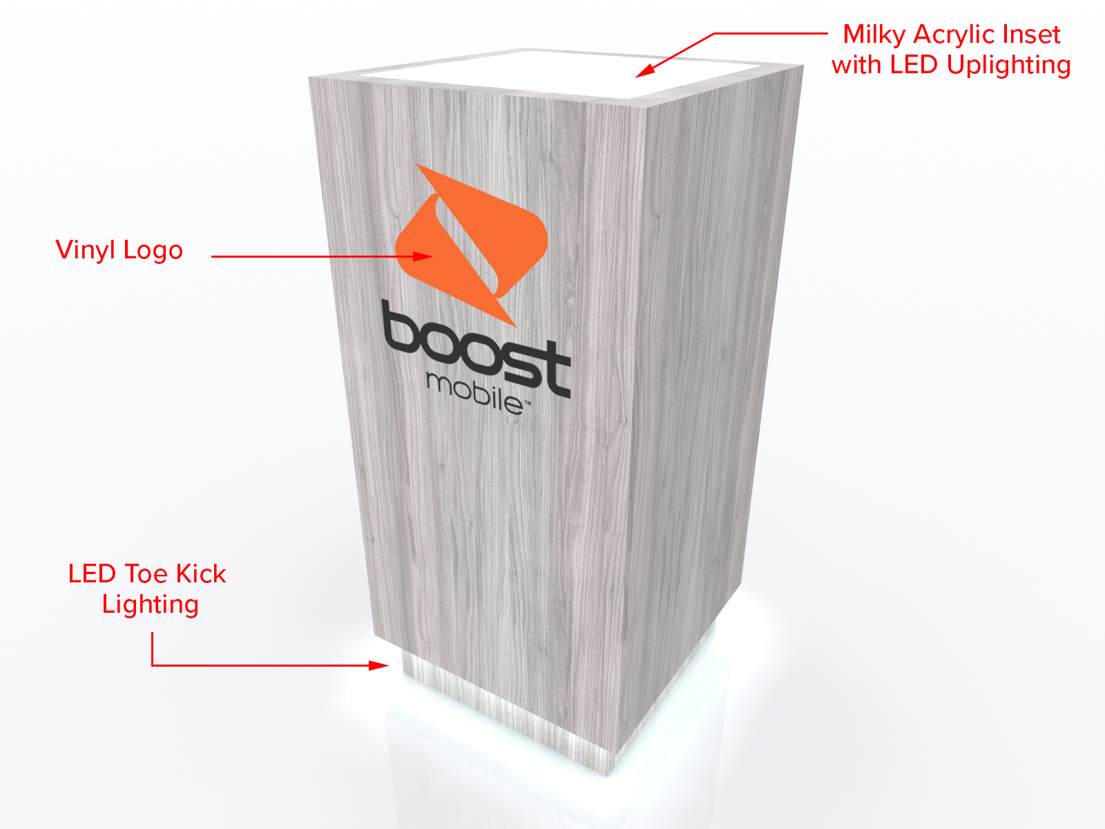 When choosing the right counter or pedestal for your display, consider how you will use it on the show floor. Do you need locking storage? Will the counter or pedestal hold a lead retrieval machine, laptop, or other electrical device? If so, you will need wire management. That may be as simple as ordering a grommet for the counter. If you are planning to use a tablet computer, consider the tablet insert option for the counter top. This option is practical, attractive, and secure for many tablets, such as an iPad.