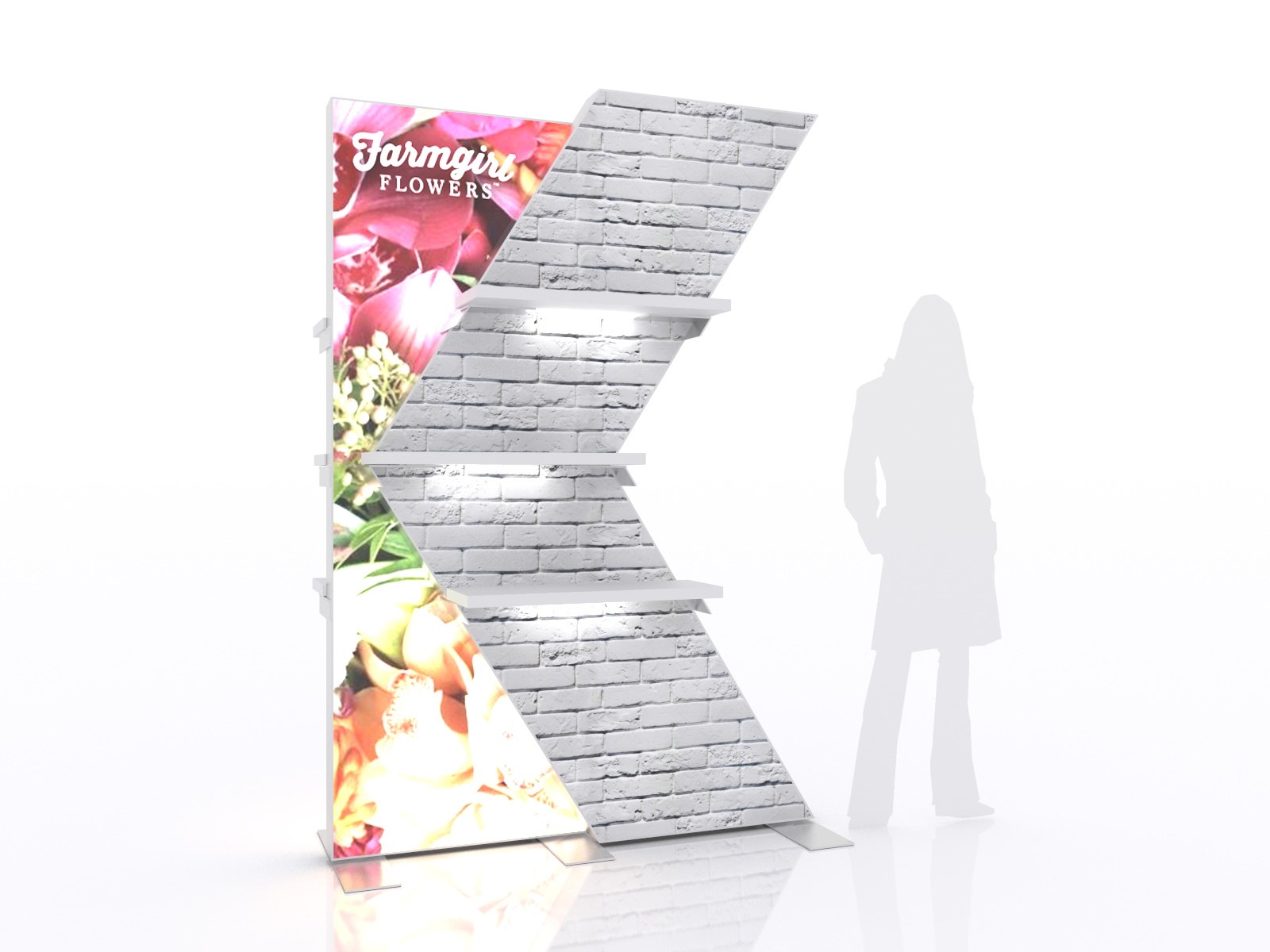 3D Banner Stands tend to be larger than banner stands, may rotate or swivel, may be backlit, or may have curves.