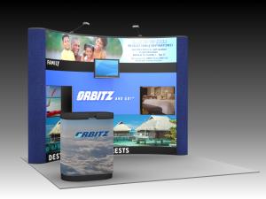 • 10 ft. Curved Pop Up with (2) Fabric End Panels, (2) Graphic Mural Front Panels, and (2) 1/3 Graphic Mural Front Panels