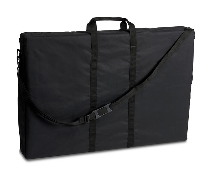 The fabric or graphic panels hang on pins that adhere to detachable steel channel bars with a magnet-to-metal connection. The panels are rollable to fit in the roto-molded case with wheels. The number of panels depends on the size of the frame.
