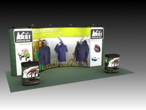 • 20 ft. Curved/Straight Pop Ups with (2) Fabric End Panels, (4) Graphic Mural Front Panels, (2) Graphic Mural Flat Panels, and (2) Graphic Mural Connector Panels