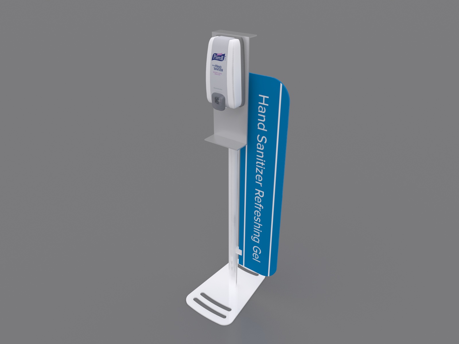 Durable Hand Sanitizer Stand PhotosMOD-9001 Hand Sanitizer Stand with GraphicMOD-9001 Hand Sanitizer Stand with Graphic  -- Image 1 MOD-9001 Hand Sanitizer Stand with Graphic  -- Image 2MOD-9001 Hand Sanitizer Stand with Graphic  -- Image 3MOD-9001 Hand Sanitizer Stand with Graphic  -- Image 4MOD-9001 Hand Sanitizer Stand with Graphic Branding  Stainless Steel Mounting Plate and TrayDurable Engineered Aluminum Extrusion