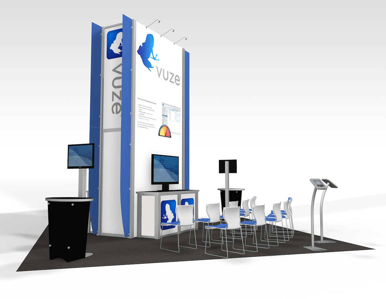 Many exhibitors blend rental components with their existing exhibit. For example, your exhibit may include the main structure, like a tower and a conference room. Renting the workstations, kiosks, or other accessories will allow you to mix and match components depending on your show requirements. In addition, it allows you to “test-drive” components to see if there’s a long-term need.