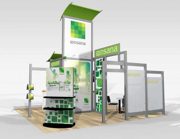 Quite often, a few custom elements added to the design can give the entire design a custom look even if it’s as simple as some colorful laminated workstations, shelves, or a reception counter. Custom laminated soffits and backlighting are also nice touches that are inexpensive and well worth the investment. As a bonus, if you re-rent the same exhibit, your second rental will most likely be less expensive, since your first rental covered the cost of those custom components.