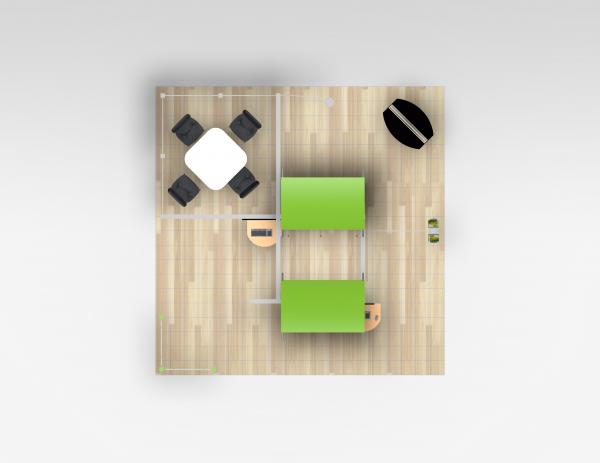 VK-5076 Trade Show Exhibit -- Image 1The VK-5076 20' x 20' is an exhibit design with something to say. Its soaring silicone edge fabric graphics and high horizontal spaces promotes your brand from every angle. The design has an airy and efficient use of floor space, offering semi-private conference area with acrylic panels, multiple workstations with locking storage, and a corner corral with physical separation from the aisles.