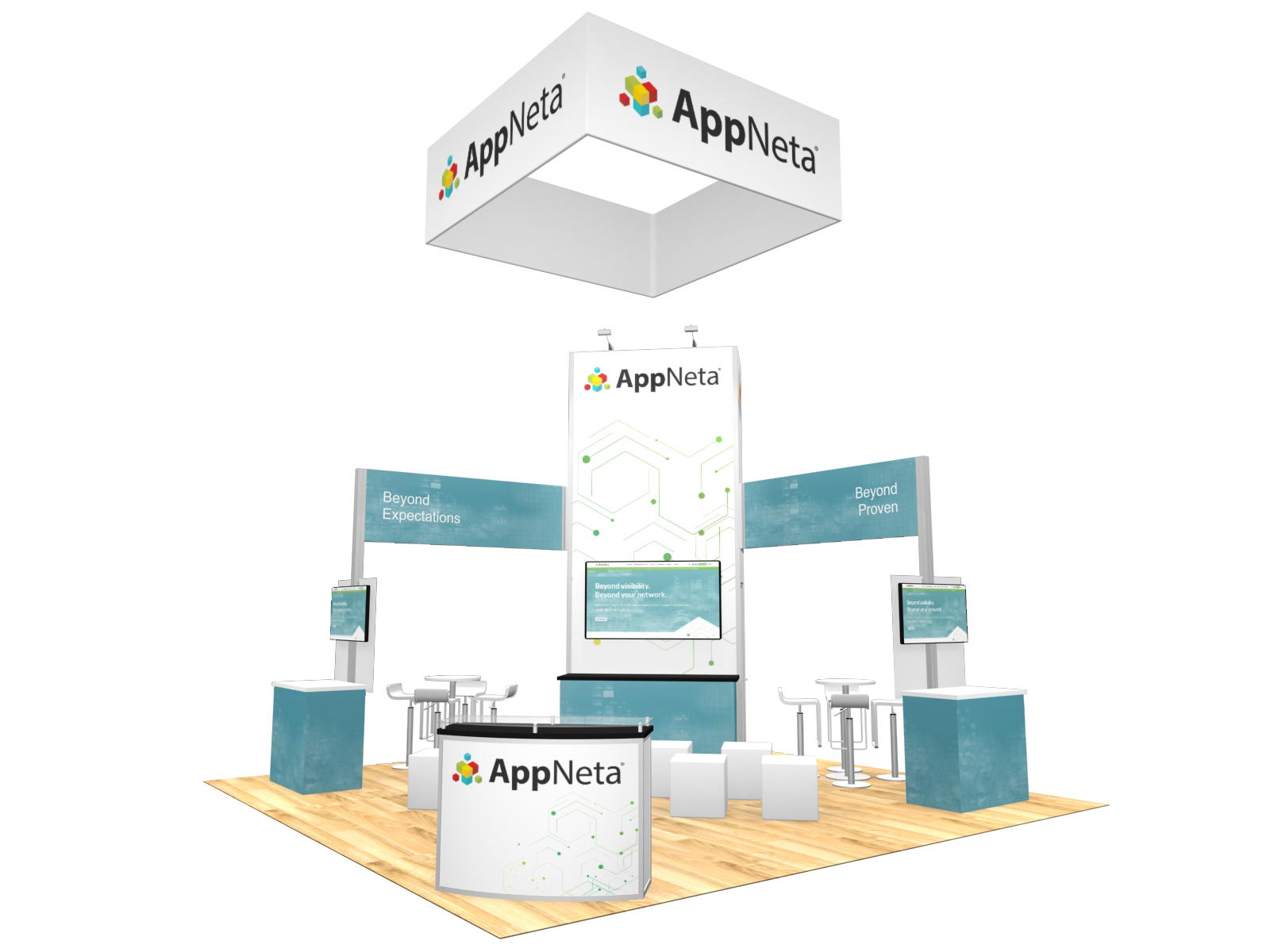 There are rental islands. Then there are Gravitee One-Step Island Exhibits. When you choose a RE-9123 Gravitee Island, you get a contemporary display with large graphics, practical accessories, and mostly tool-less assembly. The full-size panels slide together with attached connectors, whether flat or curved. Most islands pack in one or two crates, saving you on freight and drayage (material handling). And assembly takes about half the time of a traditional custom exhibit. The RE-9123 features an open floor plan, perfect for group presentations The 16 ft. high tower and storage closet ensures your valuables are safe and that the booth space is clean and unclutter throughout the show. And then there's the overhead hanging sign... a must have for any island at a large trade show where you want to be seen.