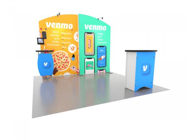 Personalize your Symphony Display with attractive counters, workstations, floating graphics, iPad clamshells, and monitor mounts. The lightweight aluminum frames are engineered for SEG dye-sublimated fabric graphics for a seamless, wrinkle-free look. Add floating graphics for additional visual layering and branding.