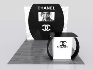 This distinctive Inline lightbox blends exceptionally bright LED lights, an aluminum SEG frame, and vibrant fabric graphics into a brilliant eye-catching display. The large LED lightbox spans the display and is framed with curved laminated panels. The middle section supports a large monitor and includes graphics for high impact. Upfront there's a modified MOD-1550 reception counter with a front backlit graphic and USB charging ports. On the far right are two product displays with uplighting. All have integrated cord management. You won't believe your eyes the first time you flip the switch and see how stunning your backlit graphic can be.
