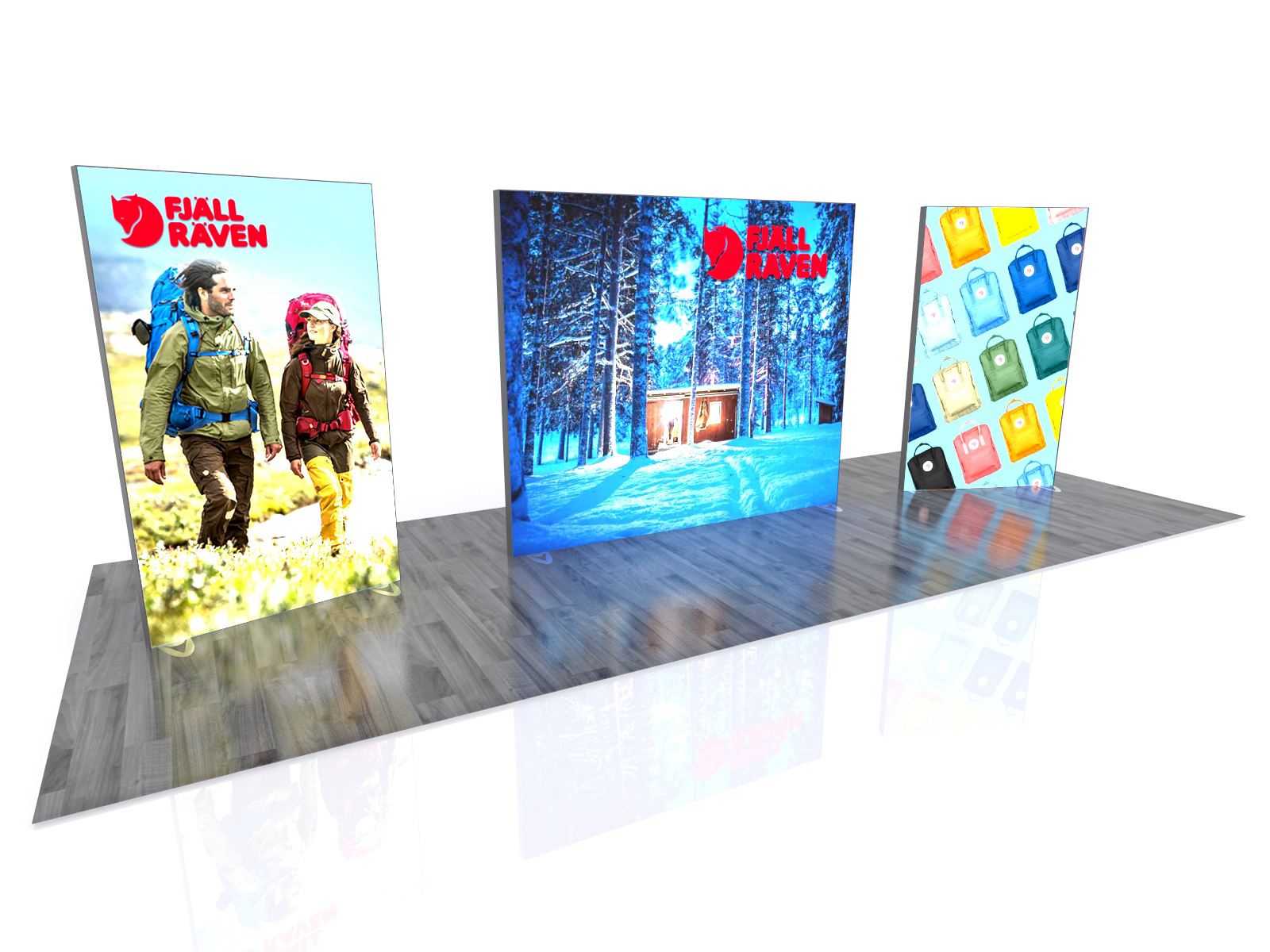 The Sunrise features lightweight aluminum extrusion and large format tension fabric graphics. Choose from 10 x 10 and 10 x 20 designs, single and double-sided graphics.
