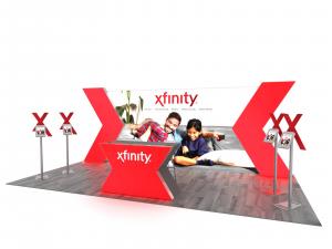 These distinctive Inline lightbox designs blend exceptionally bright LED lights, an aluminum SEG frame, and vibrant fabric graphics into a brilliant eye-catching display. The large LED lightbox spans the display and is framed with angular SEG frames. Upfront there are MOD-1368 iPad Kiosks with graphics and a beautiful MOD-1595 reception counter with backlit graphics and wireless and USB charging ports. The design includes integrated cord management. You won't believe your eyes the first time you flip the switch and see how stunning your backlit graphic can be.