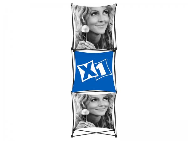 The X1 2.5ft 1x3 Popup Display is a versatile no tools stretch fabric pop-up display system. Available designs and custom display options bring excitement and flexibility to your exhibit. The X1 is easy to setup, ultra lightweight and portable and even easier to take down. Be off to your next appointment or relaxing while the competition is still sweating through the exhibit break down process. The collapsible pop-up frame uses magnetic connectors with the option of J-hook connectors for more custom or weight bearing displays. Stretch fabric graphics come pre-attached to the frame, and are easily changed out in the field! Kits come with graphics, frame and drawstring carry bag. Kits displayed are our most popular versions. Eight additional frames available plus custom options per request and hundreds of graphic configurations available.