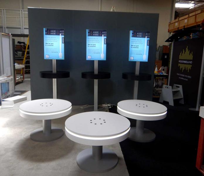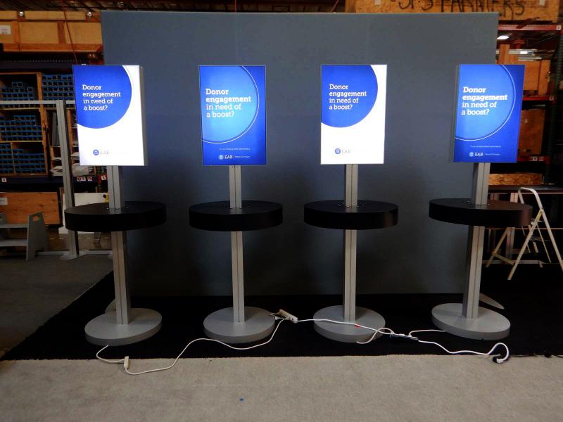 Whether an inline or an island or a counter or a monitor stand, Rental Displays are an elegant, practical, and cost-effective alternative. Don't need a full exhibit? Check out Accessory Options like lightboxes, iPad stands, counters, monitor stands, and hanging signs. There are even charging stations and portable tables.