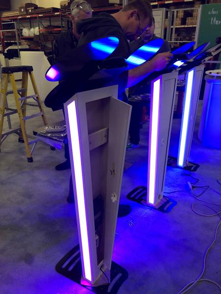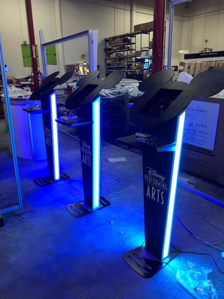 The Retail Displays Gallery includes custom retail displays, corporate environments, and graphic lightboxes. These represent unique solutions for branding and merchandising. Whatever you need — counters, workstations, tablet stands, lightboxes, or a full retail store build — we can design and build it.